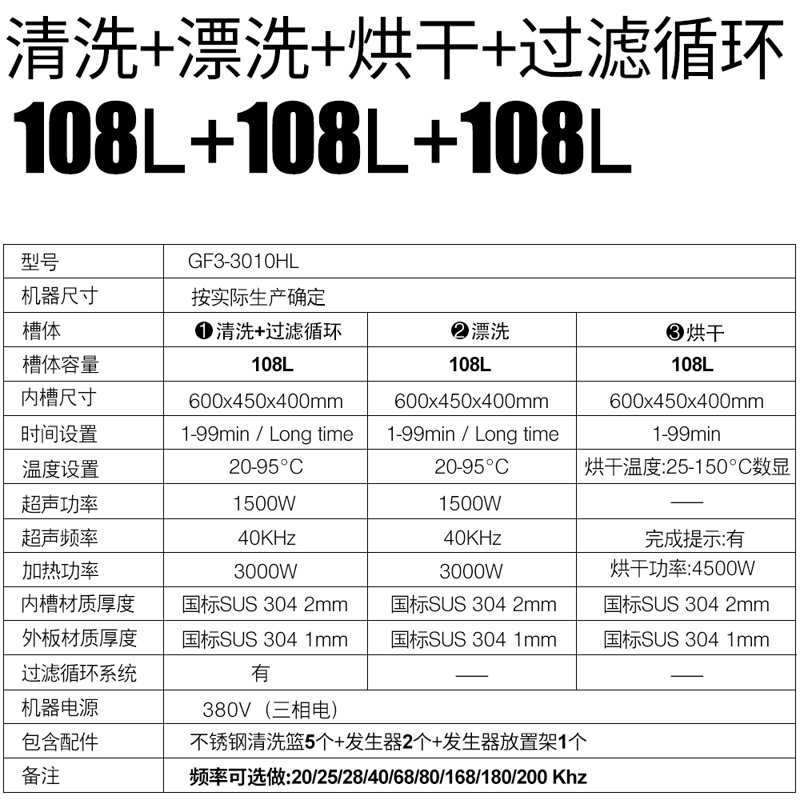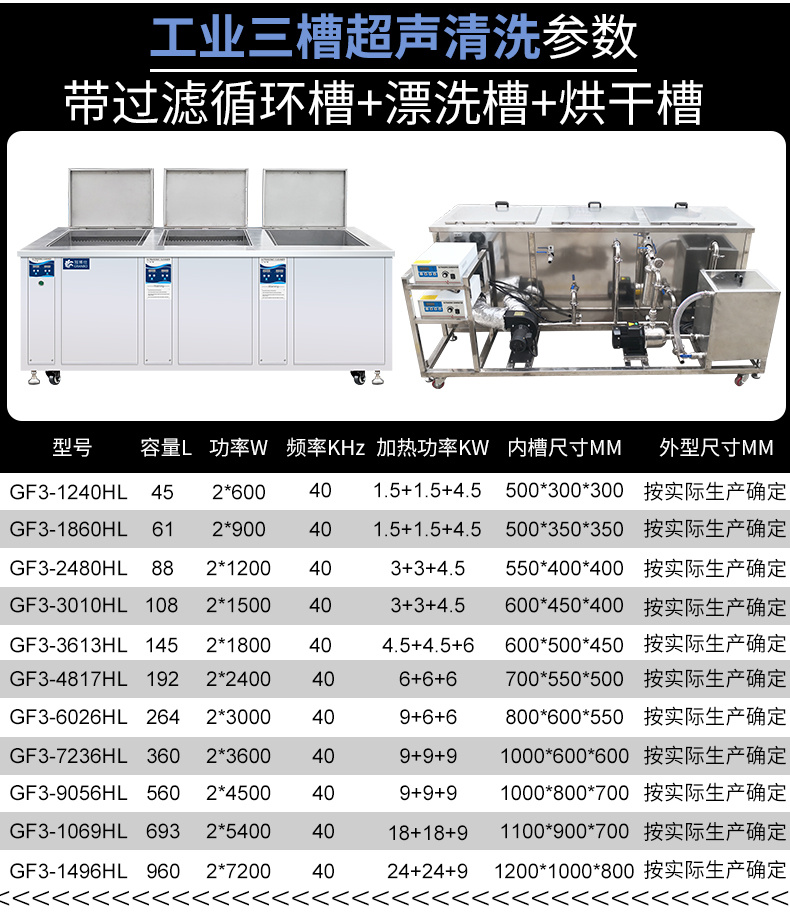 - 三槽工藝:超聲波清洗+過濾>漂洗>烘干其它等工藝可定制;